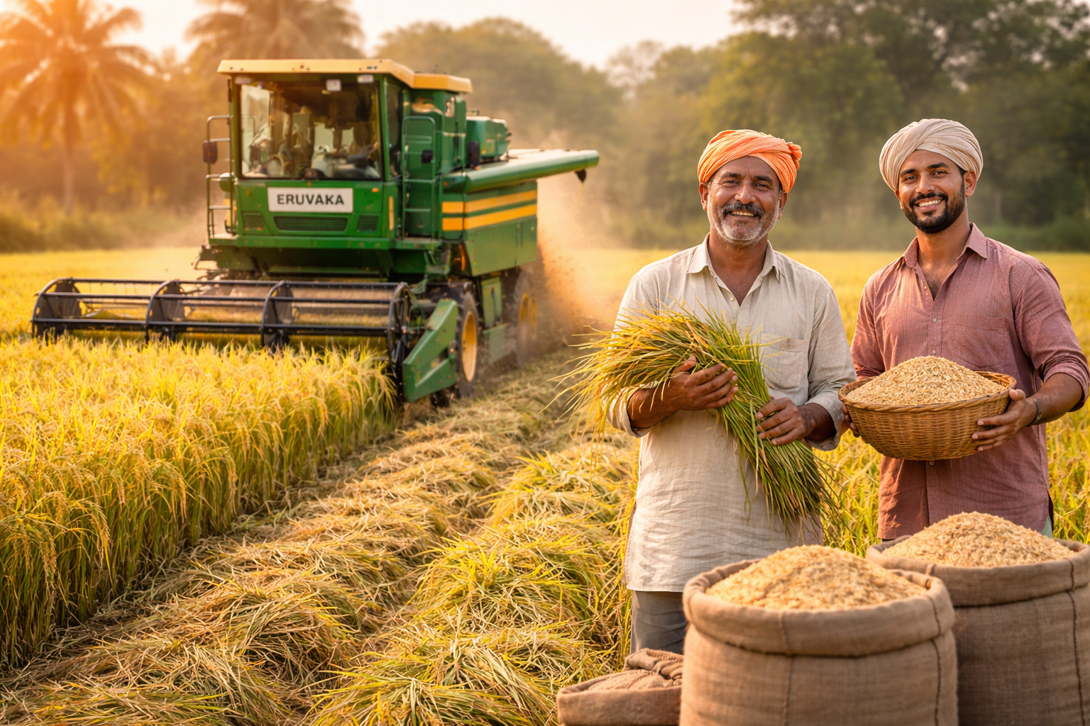 Eruvaka empowers farmers with end-to-end mechanized farming services including land preparation, sowing, transplanting, weeding, drone spraying and harvesting. In a time of increasing labour shortages, our advanced machinery and technology-driven solutions help farmers complete operations on time, reduce dependency on manual labour, lower costs and achieve higher yields with better income.