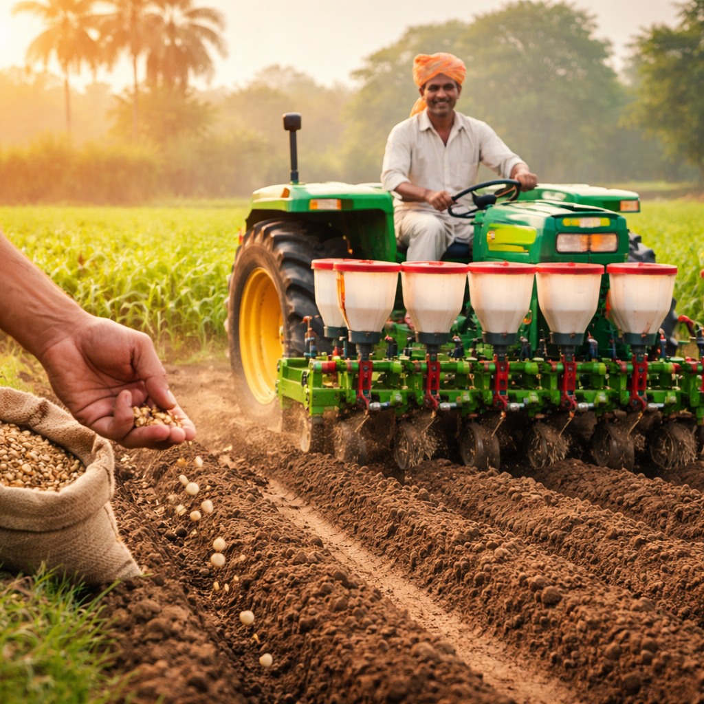 Eruvaka empowers farmers with end-to-end mechanized farming services including land preparation, sowing, transplanting, weeding, drone spraying and harvesting. In a time of increasing labour shortages, our advanced machinery and technology-driven solutions help farmers complete operations on time, reduce dependency on manual labour, lower costs and achieve higher yields with better income.